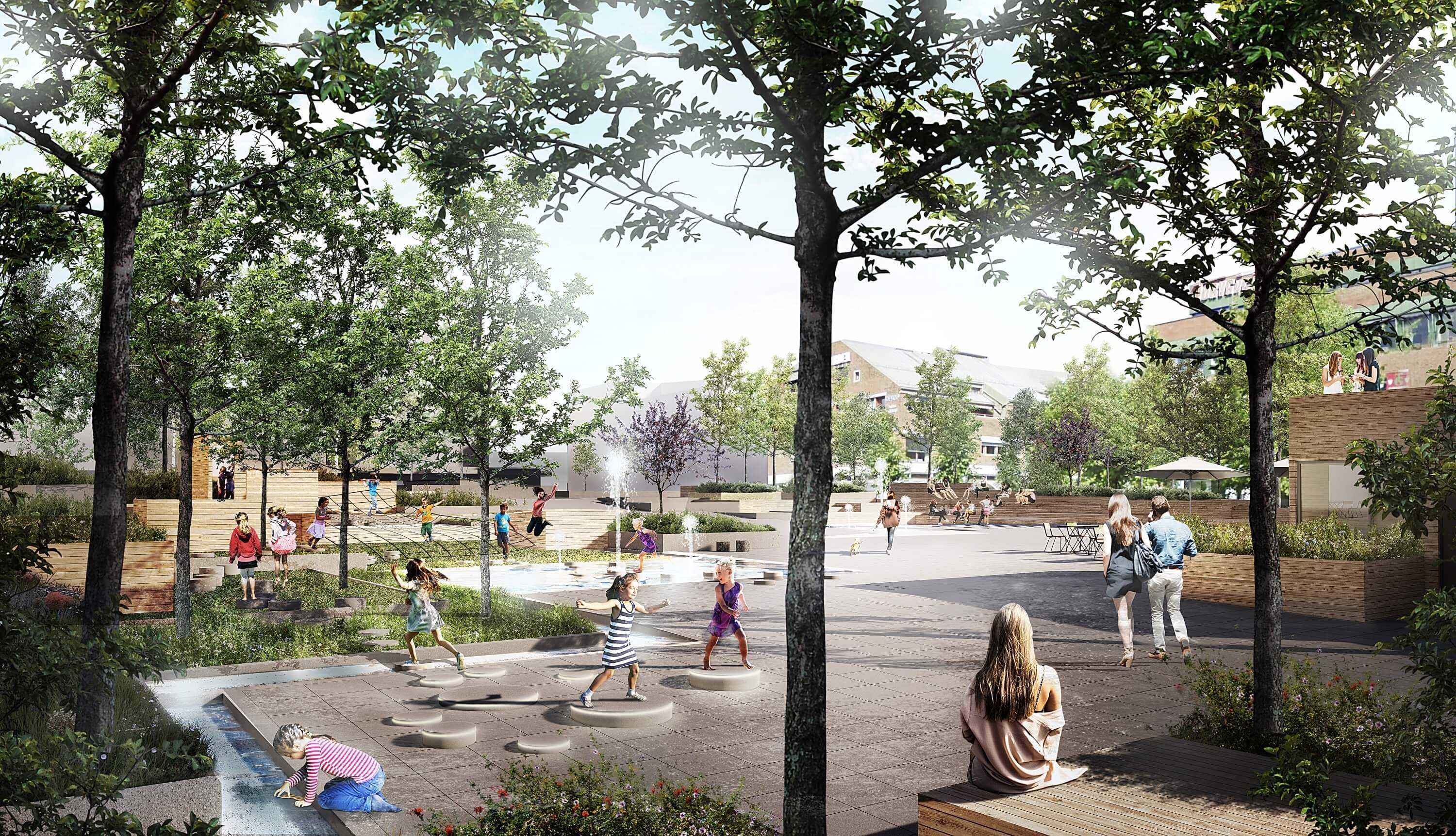 Nedre torg blir et knutepunkt for et levende gateliv i Ski sentrum, med en kombinasjon av åpne rom og sitteplasser i en grønn og moderne innpakning.